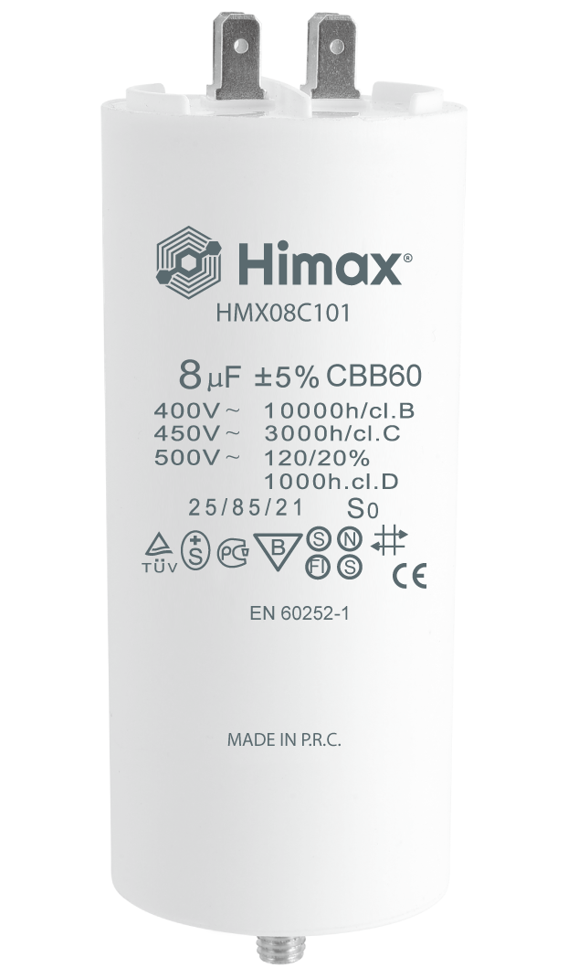 HIMAX CONDENSATORE CBB60 8µF 2+2 pin vite con dado e rond.