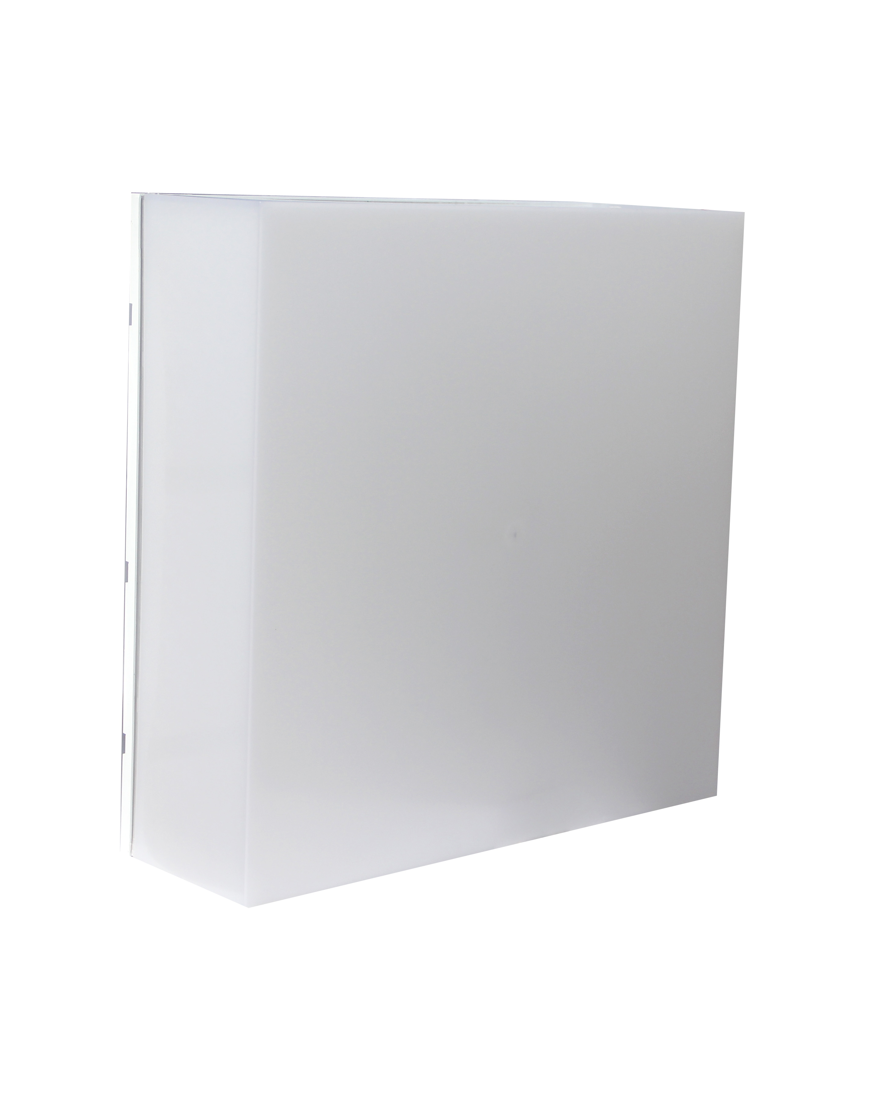 Applique quadrata IP65 250x250x75mm con fascio luminoso 120°, potenza 20W, temperatura 3CCT, lumen 2100LM, voltaggio 180-250V, corpo e cover in policarbonato.