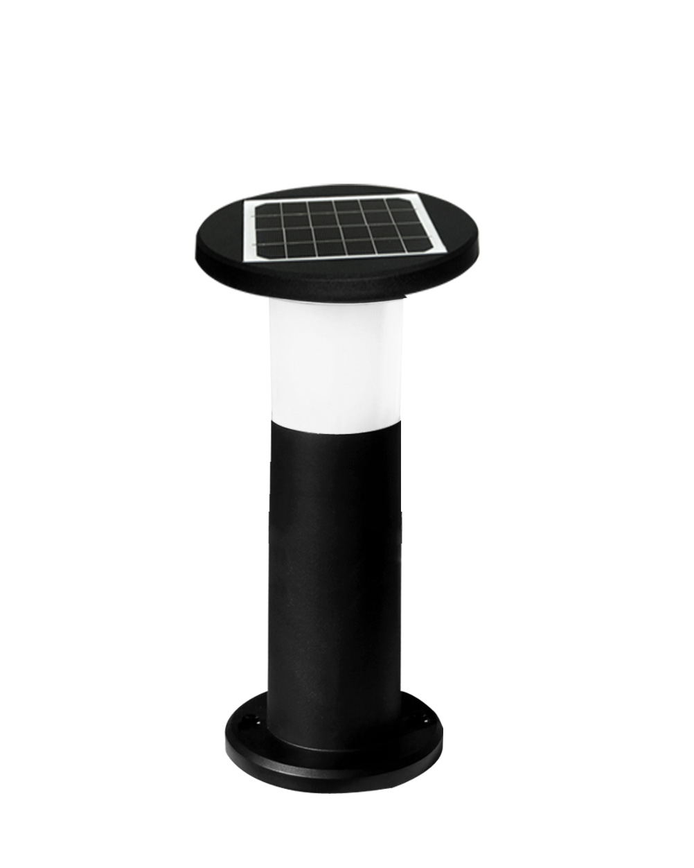 Lampione solare da giardino Ø210x572mm (base Ø175mm) con potenza 30W, temperatura 2CCT (4000K/6000K), lumen 300Lm e corpo e diffusore in policarbonato termoplastico.