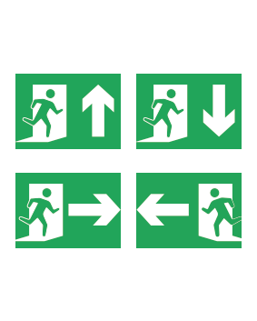 Sticker uscita di emergenza a destra, sinistra, in basso, in altro per lampada di emergenza IP611K.