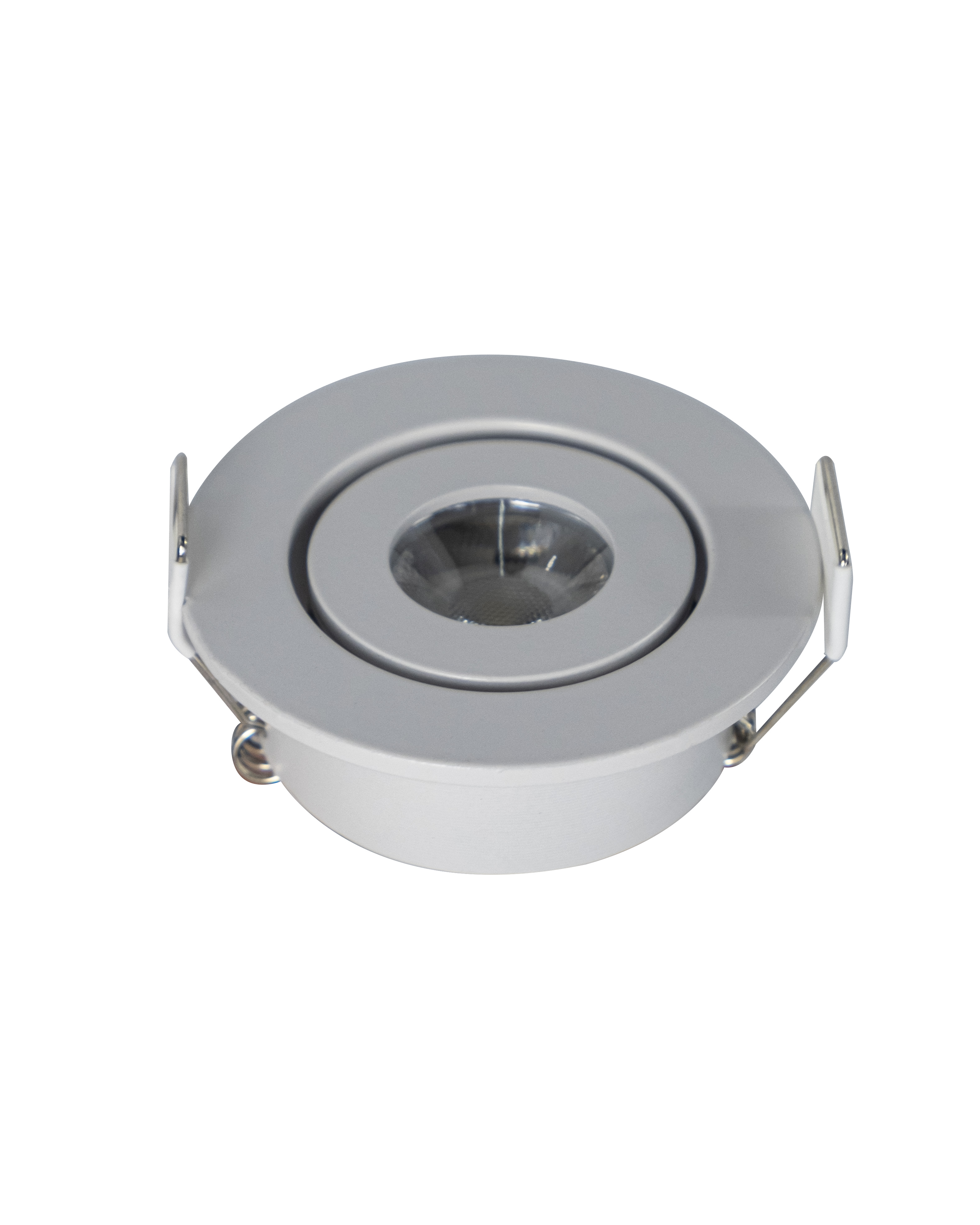 Mini Spotlight orientabile rotondo bianco IP20 52Øx20 mm con fascio luminoso 45°, potenza 3W, struttura in alluminio, lente in policarbonato e foro 43Ø mm.