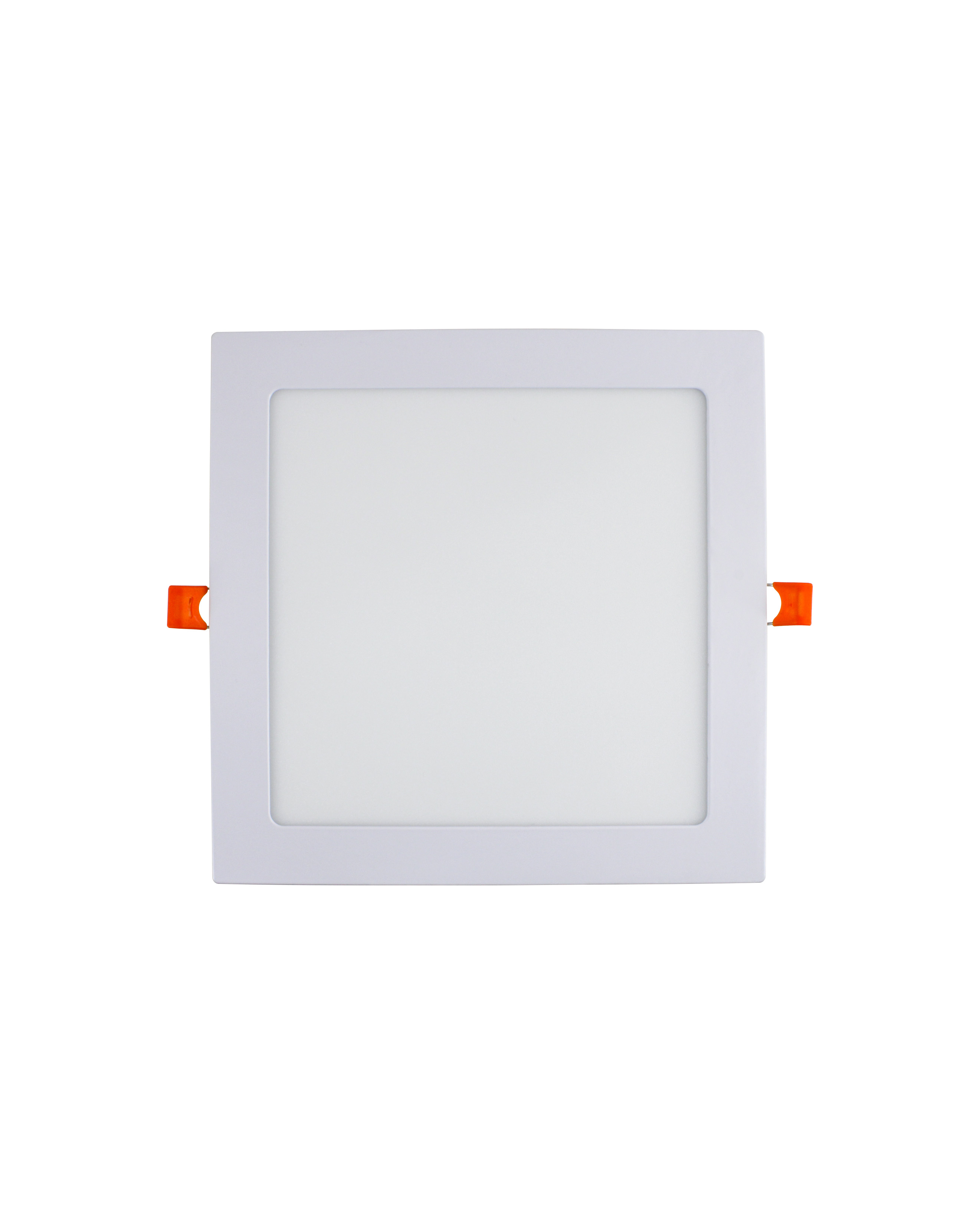 Mini pannello slim a incasso 3CCT quadrato IP20 219x219x18mm con fascio luminoso 120°, potenza 18W, temperatura 3CCT, lumen 1550LM, corpo in alluminio, diffusore in policarbonato e foro Ø203mm.