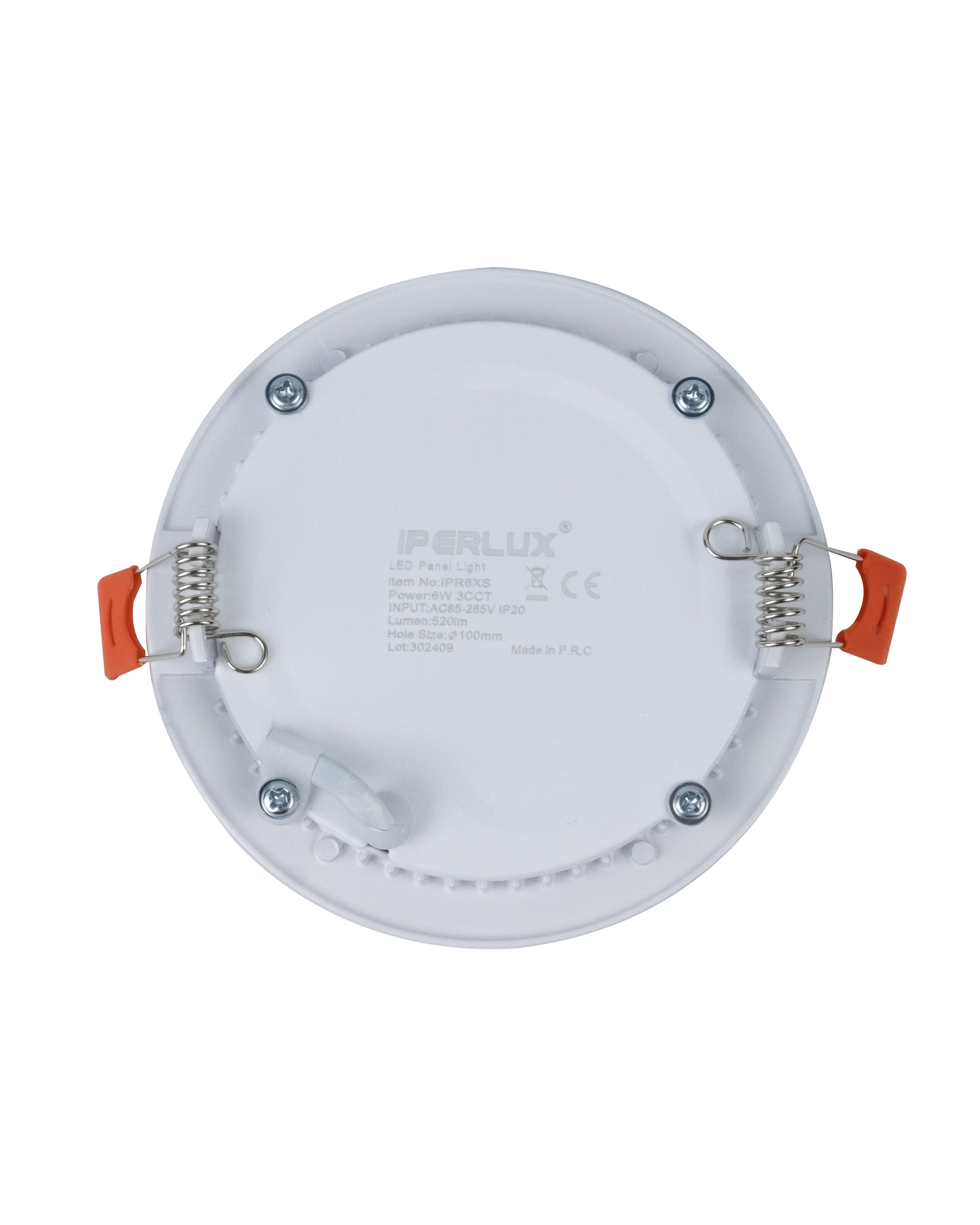 Mini pannello slim a incasso 3CCT rotondo IP20 118Øx16mm con fascio luminoso 120°, potenza 6W, temperatura 3CCT, lumen 520LM, corpo in alluminio, diffusore in policarbonato e foro Ø100mm.