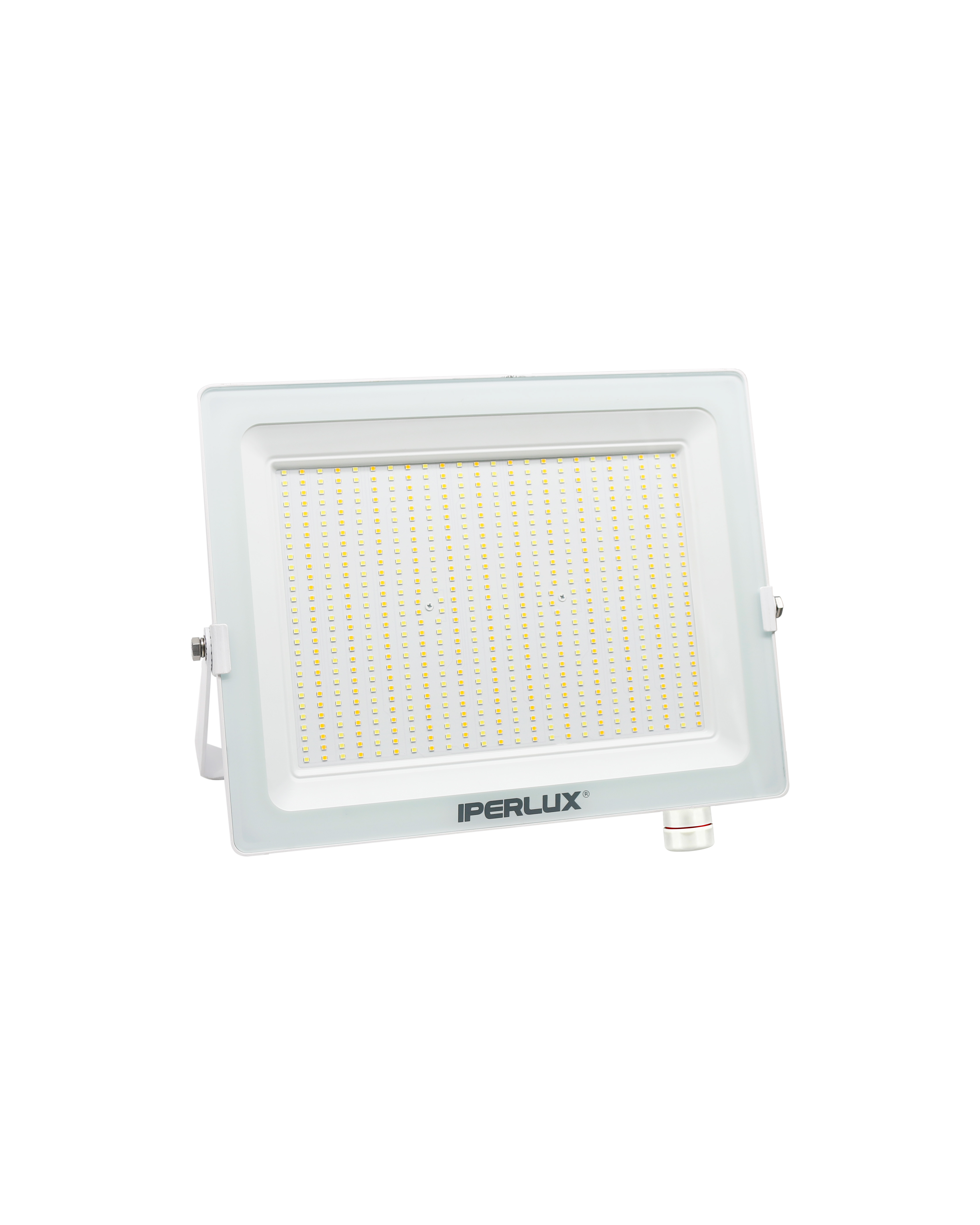 Proiettore extra slim bianco IP65 395x340x40mm con fascio luminoso 120°, potenza 200W, voltaggio 175-265V, temperatura 3CCT, lumen 30000LM, corpo in alluminio e cover in vetro; con cavo di 500mm e scaricatore di tensione incluso.