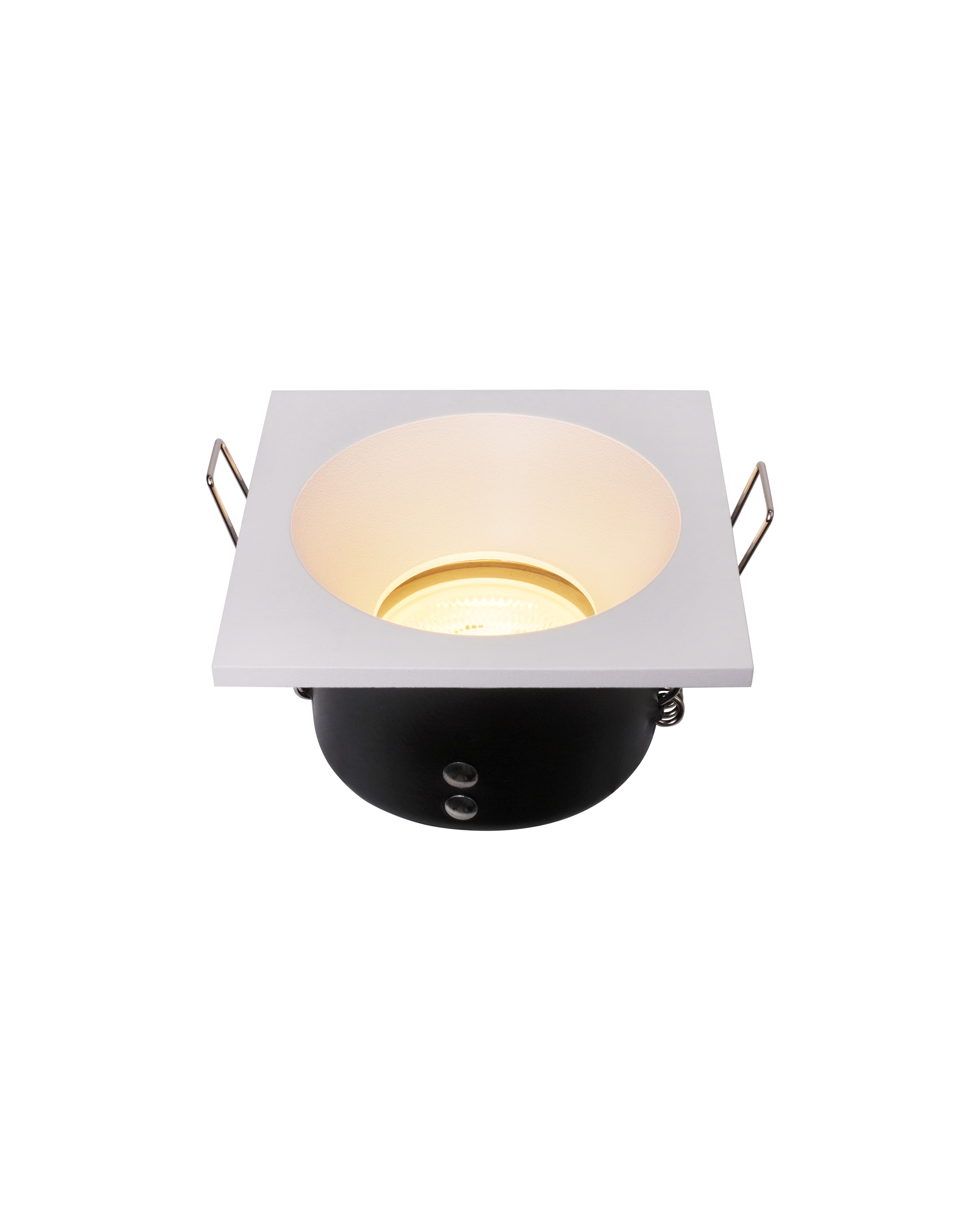 Porta faretto fisso a incasso IP65 in alluminio bianco quadrato 85Øx45 mm con adattatore GU10 incluso e foro 71mm con diffusore in vetro.