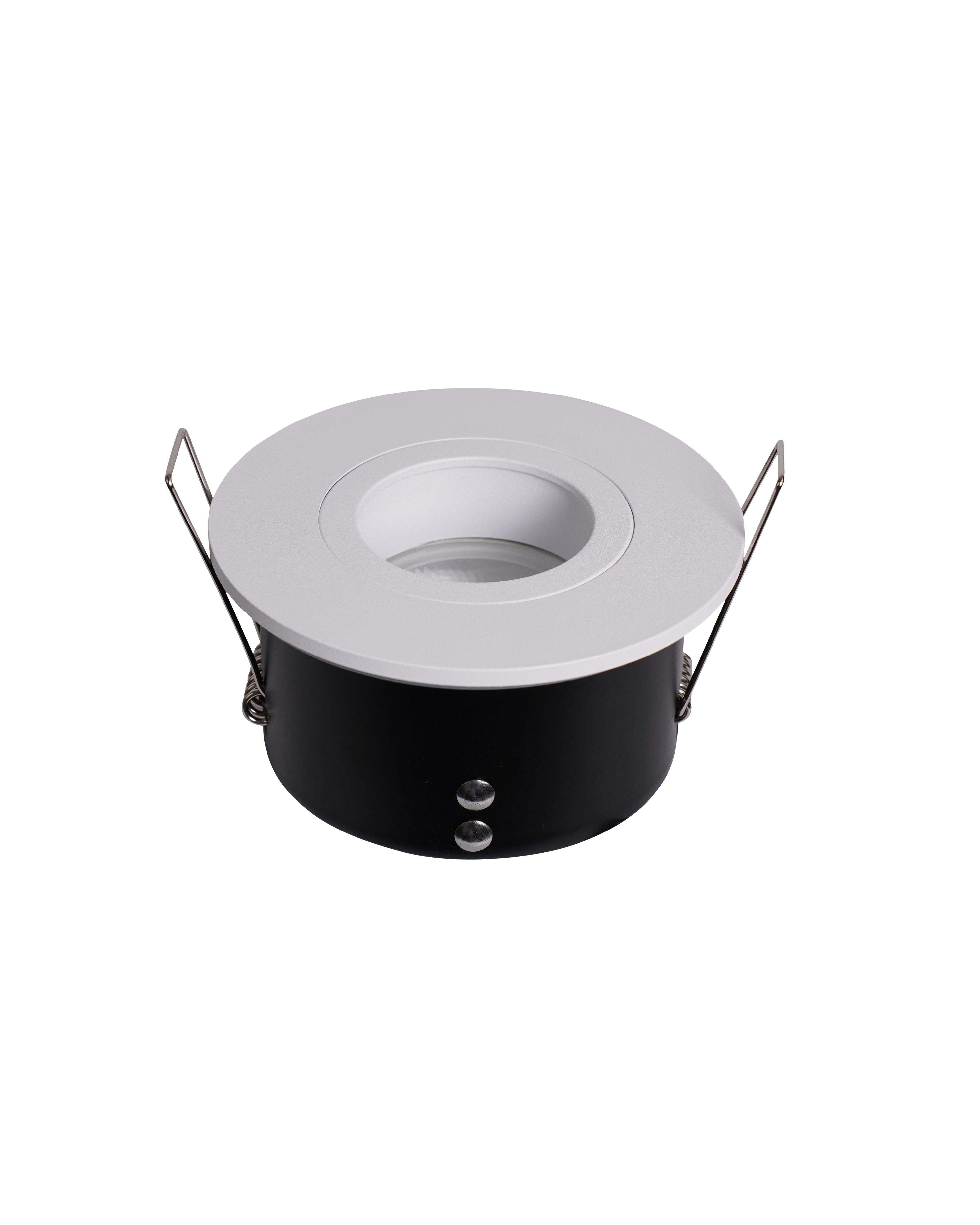 Porta faretto orientabile a incasso IP65 in alluminio bianco rotondo 85Øx44 mm con adattatore GU10 incluso e foro 74mm con diffusore in vetro.
