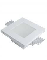 Porta faretto in gesso bianco con vetrino IP20 120x120x62 mm per cartongesso con adattatore GU10 incluso e foro 123 mm.
