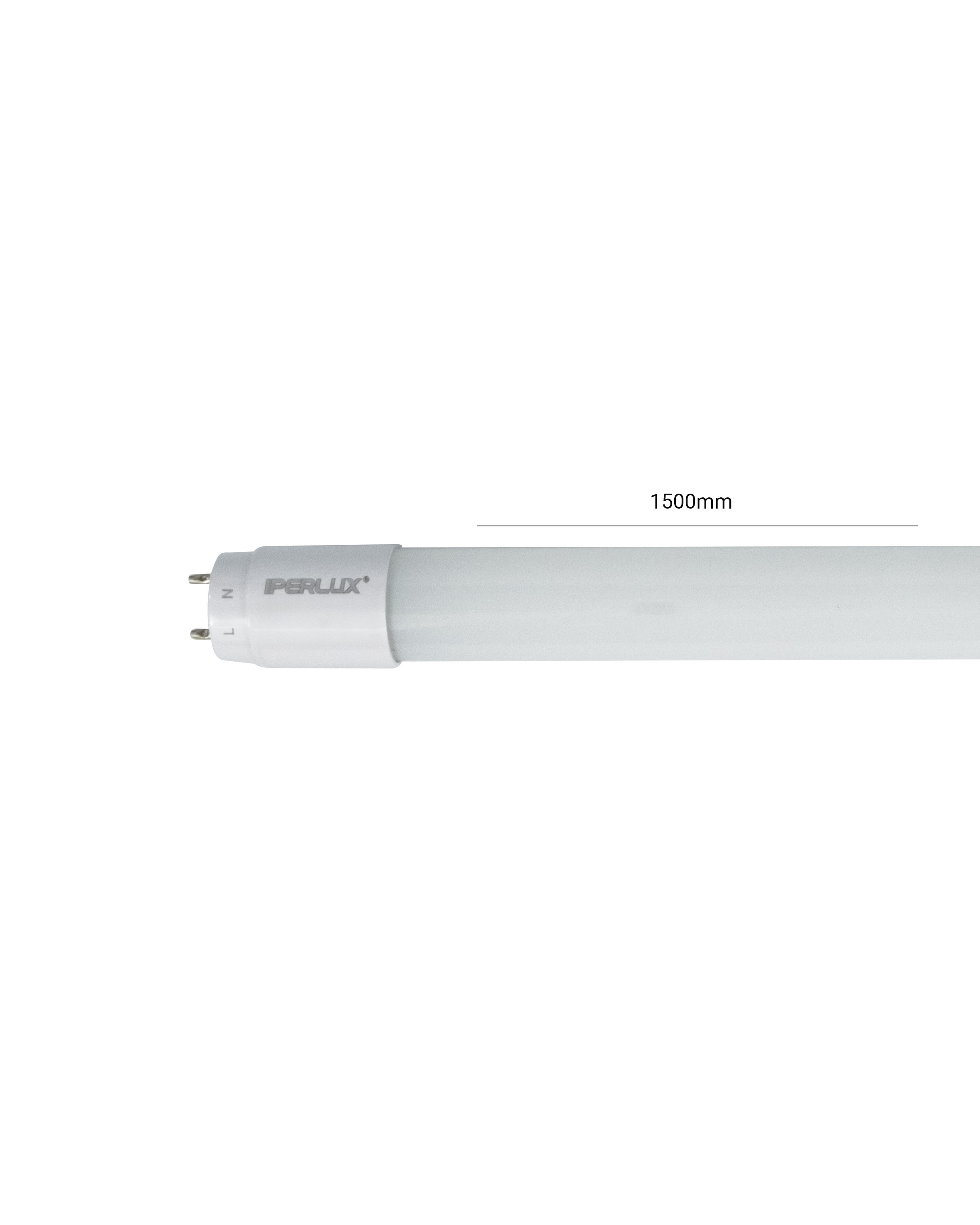 Tubo T8 1500 mm con fascio luminoso 180°, potenza 24W, temperatura 4000K, lumen 2880LM, voltaggio 220-240V, corpo in vetro e cap in policarbonato.